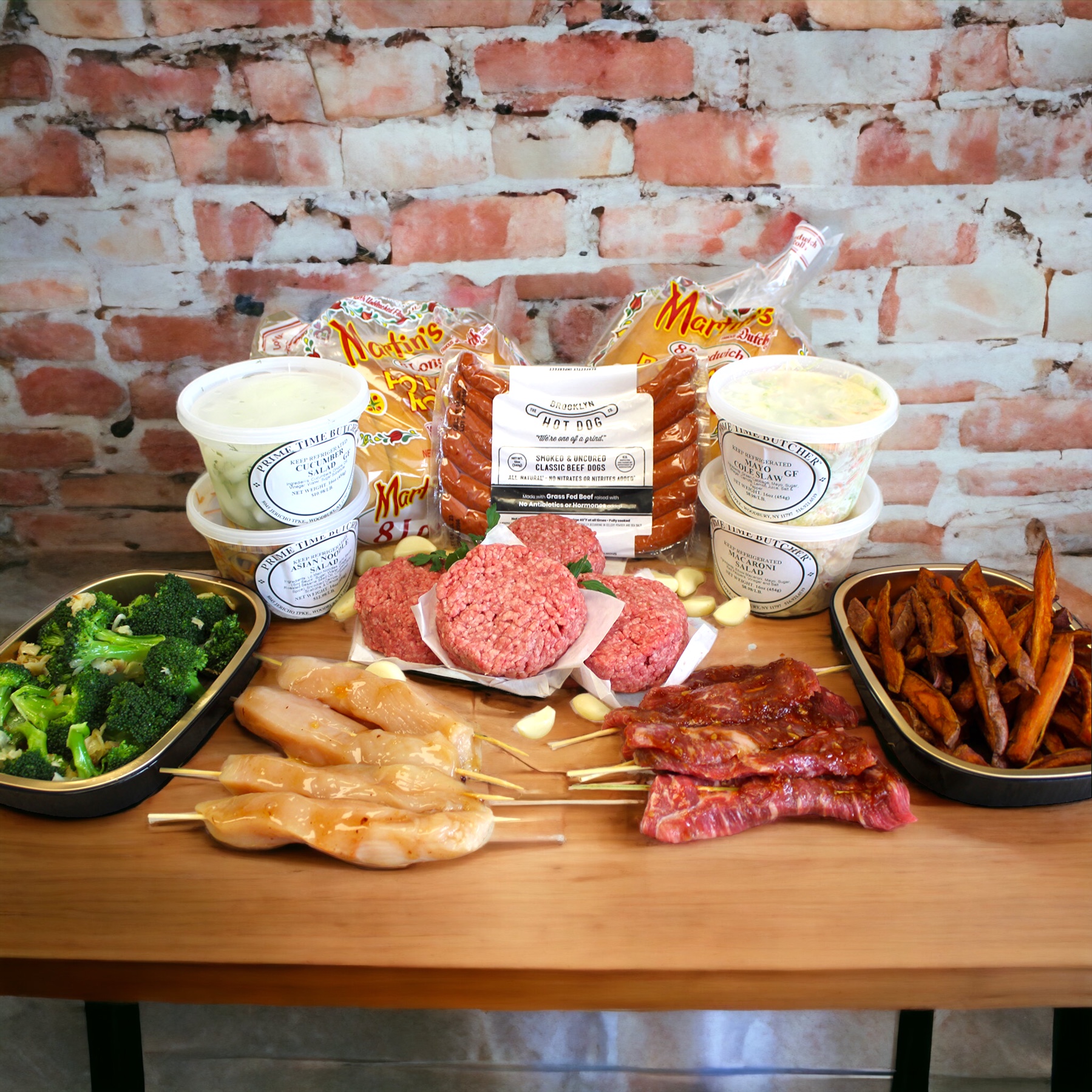 The Weekend Griller is a complete BBQ package for 6 to 8 hungry guests. It’s perfect for that family backyard get together. Just don’t forget to pickup the ketchup and mustard.
