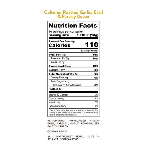 Pasteurized cream, basil, parsley, garlic powder, sea salt, cultures