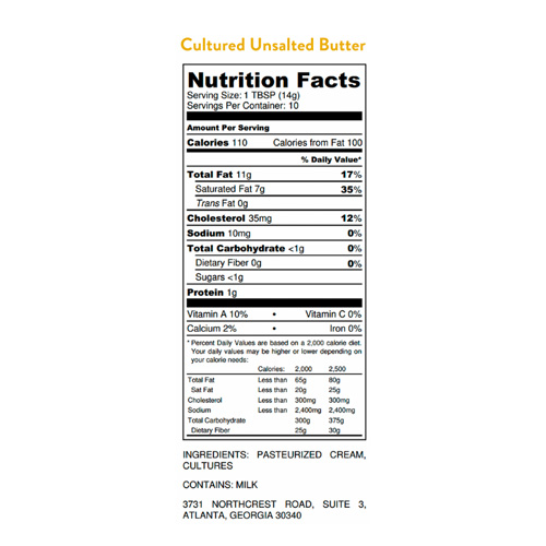 Because we use the freshest cream and we culture and batch churn in a process that takes up to 20 times longer than mass-production methods, our unsalted butter stands alone with superior flavor and creaminess.